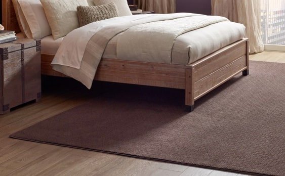 brown rug in bedroom
