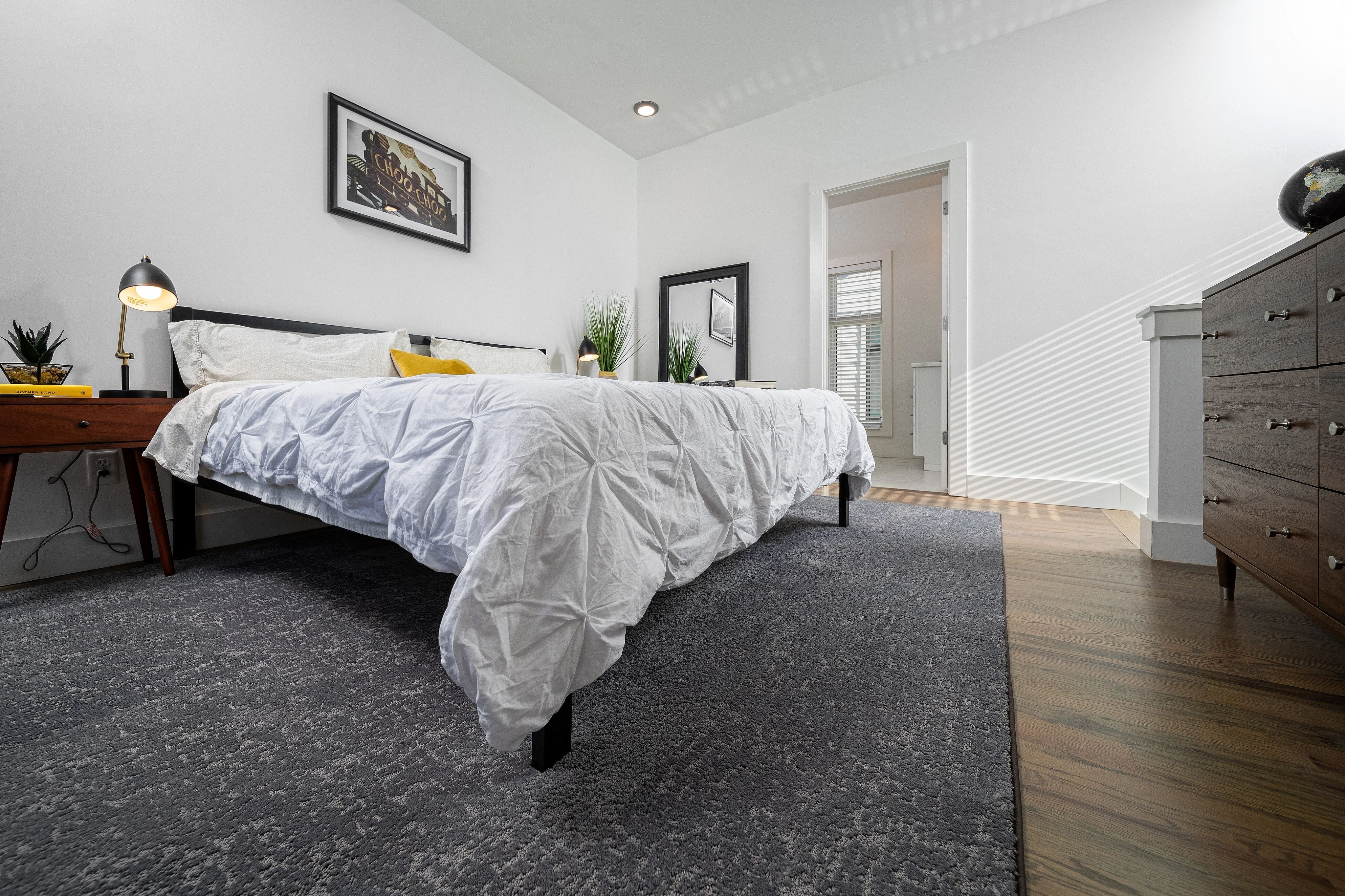 dark grey rug in bedroom